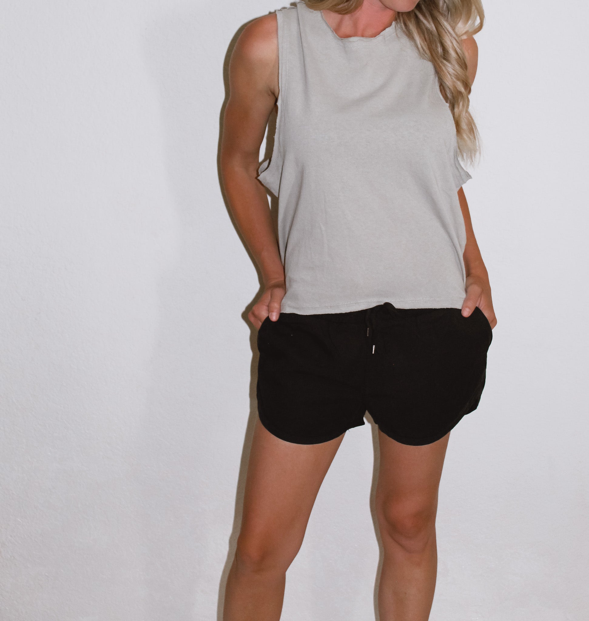 Sage raw hem sleeveless tank