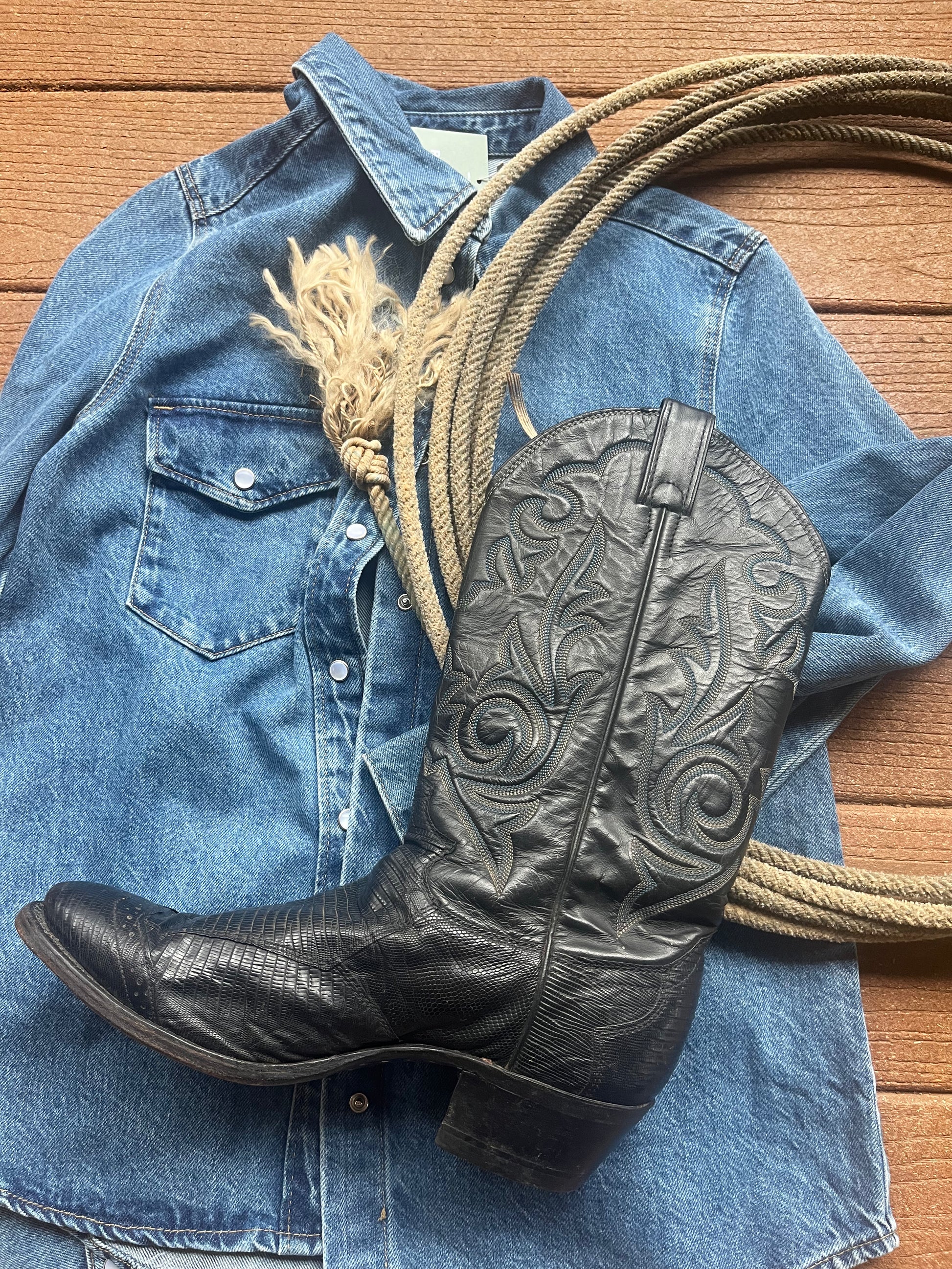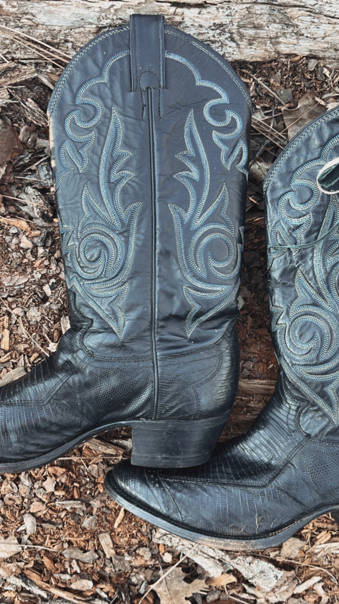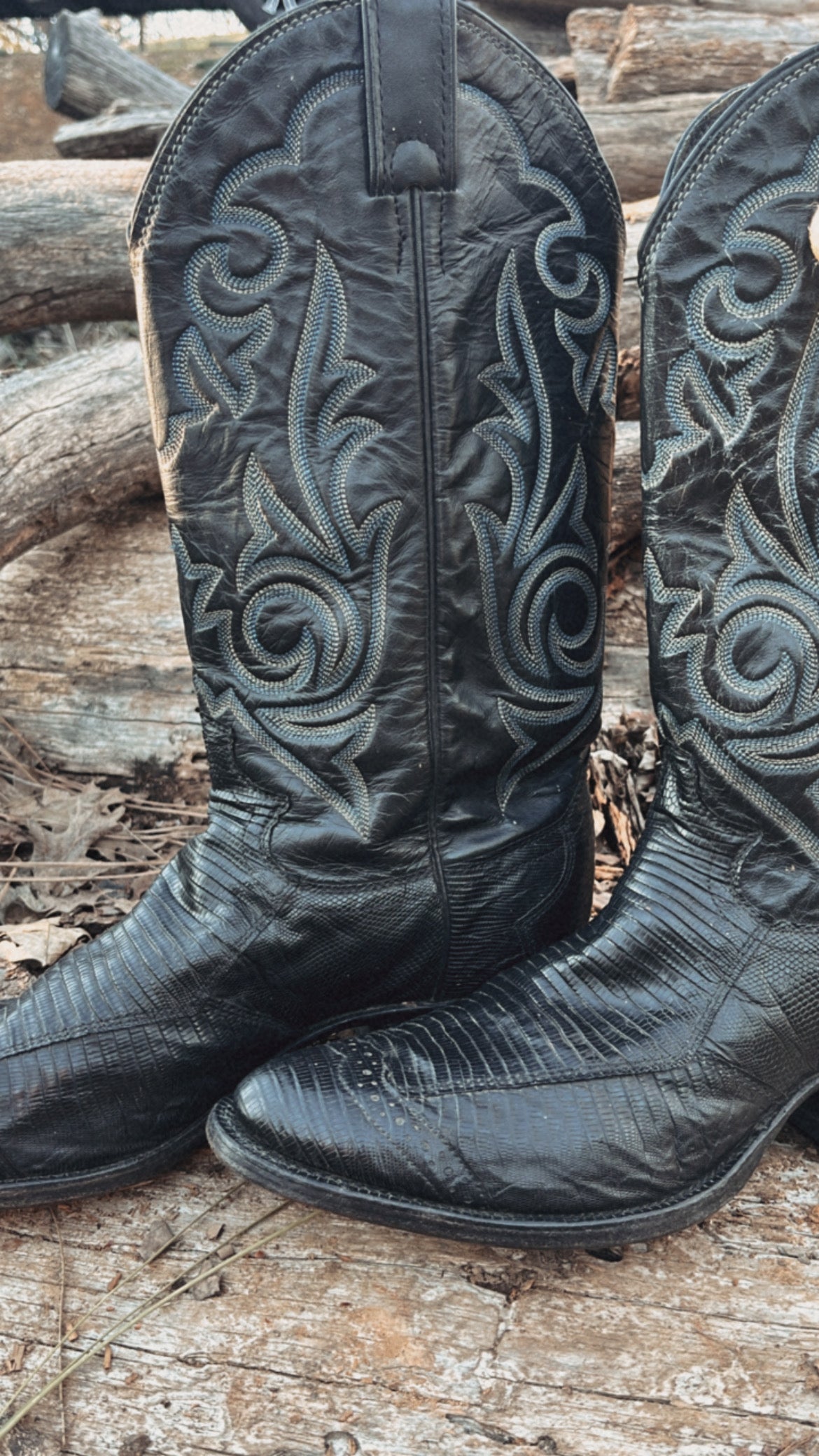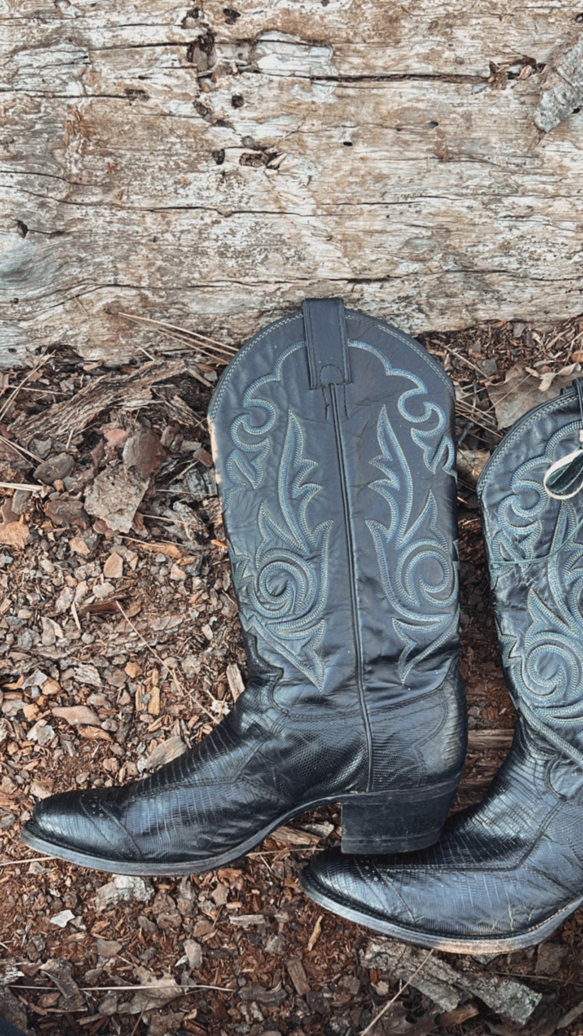 * These classic Justin cowboy boots feature a stunning lizard, print leather design on the foot and beautiful embroidered shaft detailing. These tall boots showcase, intricate stitching patterns in a traditional western, silhouette, perfect for country concerts, rodeos western events or adding authentic cowboy style to casual outfit outfits.