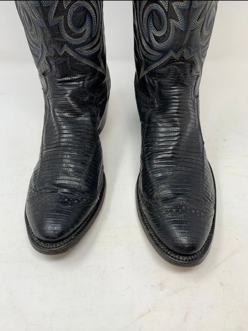 Features: Embroidered shaft, lizard, print, leather, western stitching, traditional, heel, tall, boot height